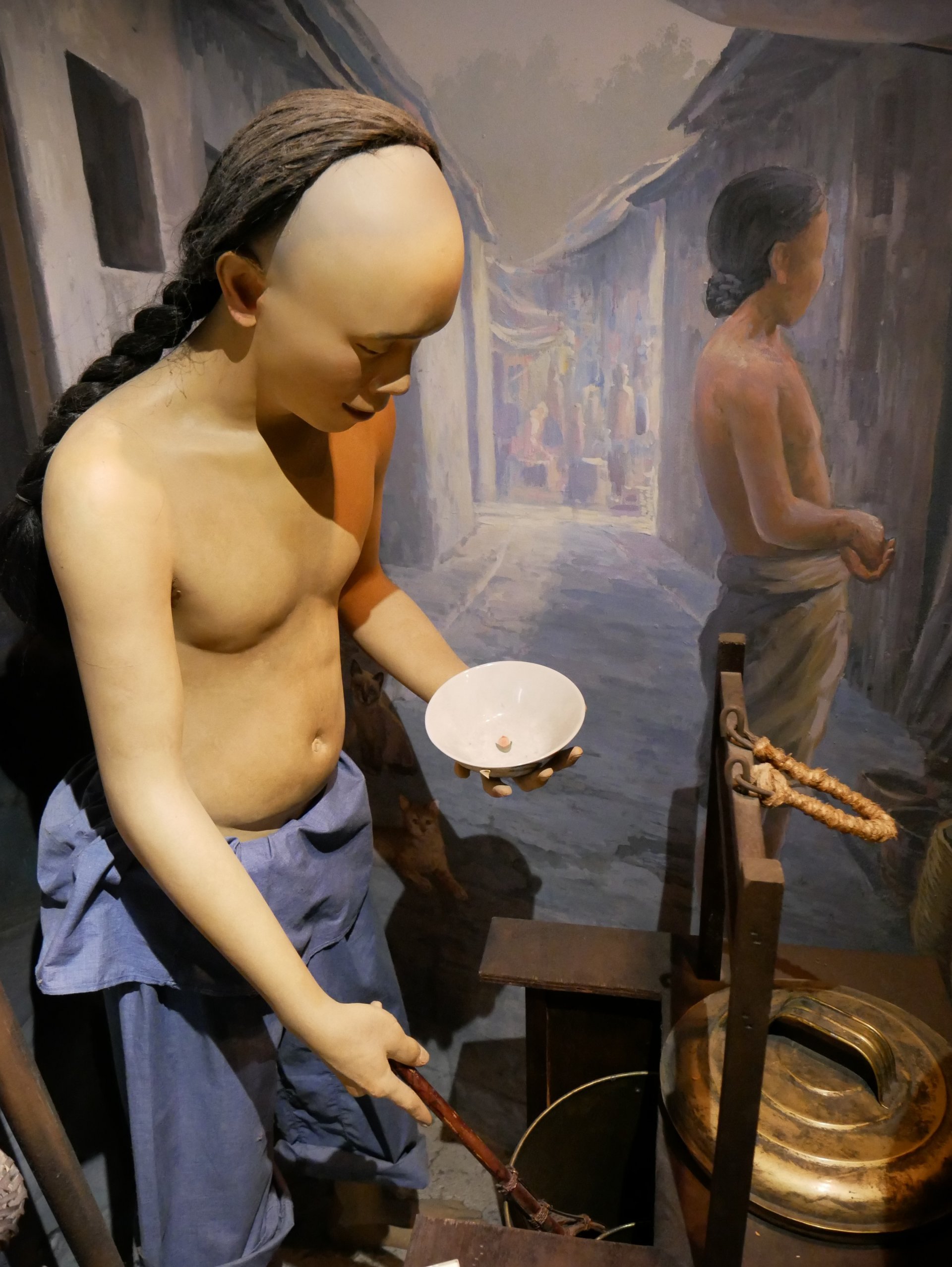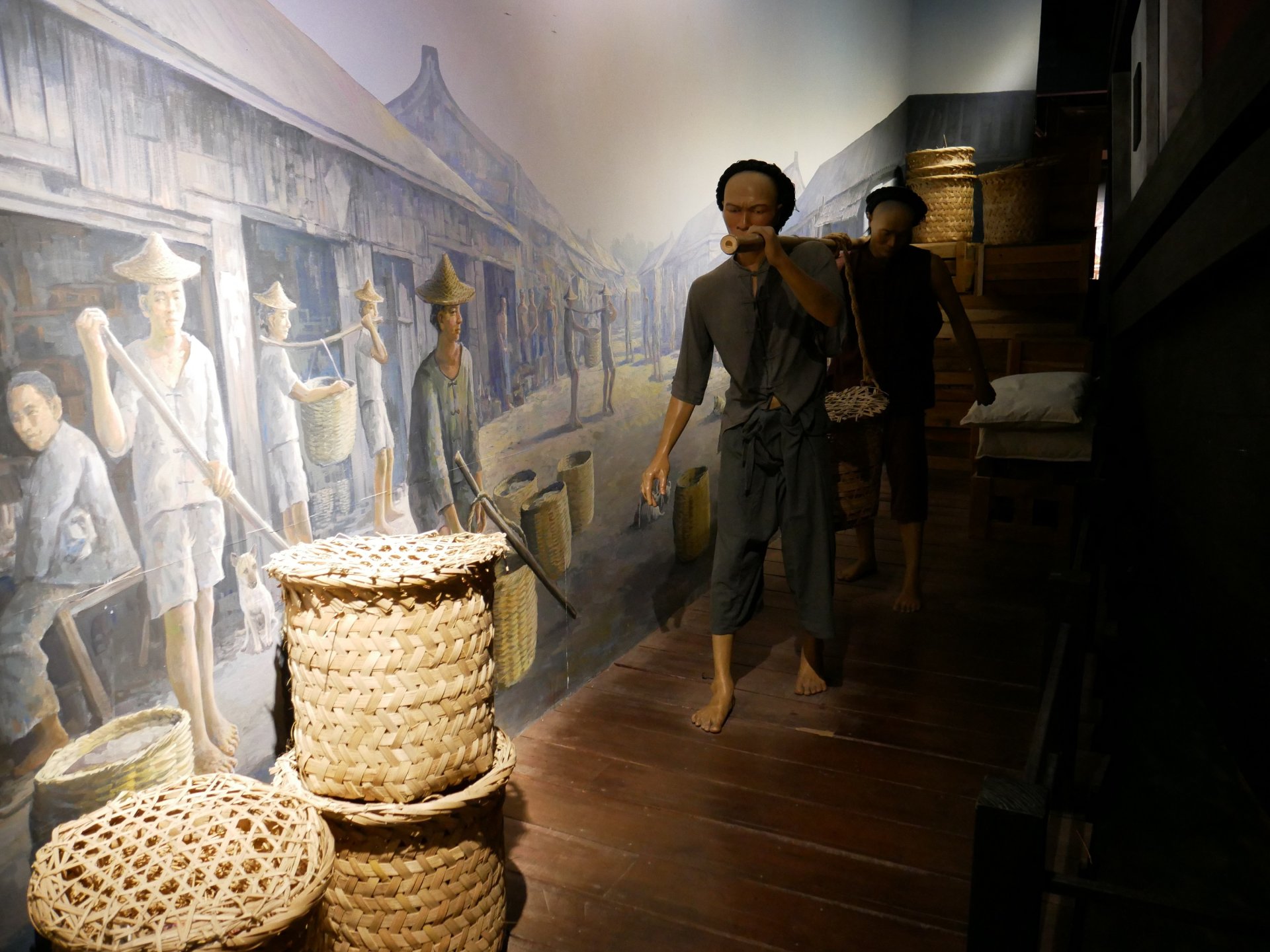 มาดูชั้น 2 กันบ้าง เป็นพิพิธภัณฑ์ท้องถิ่นเยาวราช ซึ่งในช่วงแรกๆของชาวจีนที่อพยพมา ส่วนใหญ่จะเริ่มต้นทำงานรับจ้างเป็นกรรมกรแบกหาบหรือขายของหาบเร่
