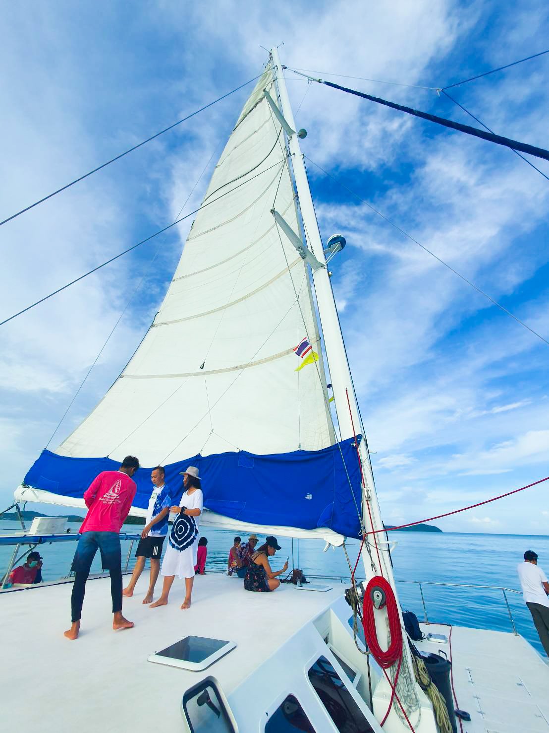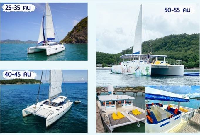 เรือยอร์ชที่จะเป็นเรือยอร์ช Catamaran ซึ่งจะสามารถบรรจุได้ตั้งแต่ 25-35 คน 40-45 คน และ 50-55 คน ซึ่งเราจะได้เรือลำใดนั้นขึ้นกับขนาดคนในวันนั้น ทางบริษัทจะจัดเรือมาให้เราเอง แพ็กเกจนี้จะรวมรถตู้รับส่งจากโรงแรมจนถึงท่าเรืออ่าวฉลองเลยนะคะ