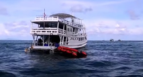 จากนั้นไปกินข้าวแถวเกาะพีพีดอน (Ko Phi Phi Don) ซึ่งเป็นเรือ Diving กลางทะเล เราก็ต้องขึ้นจากเรือ speed boat มาบนเรือ Diving กัน ซึ่งอาหารบนเรือจะเป็นแบบบุฟเฟต์ค่ะ ไม่มีหมูนะคะ