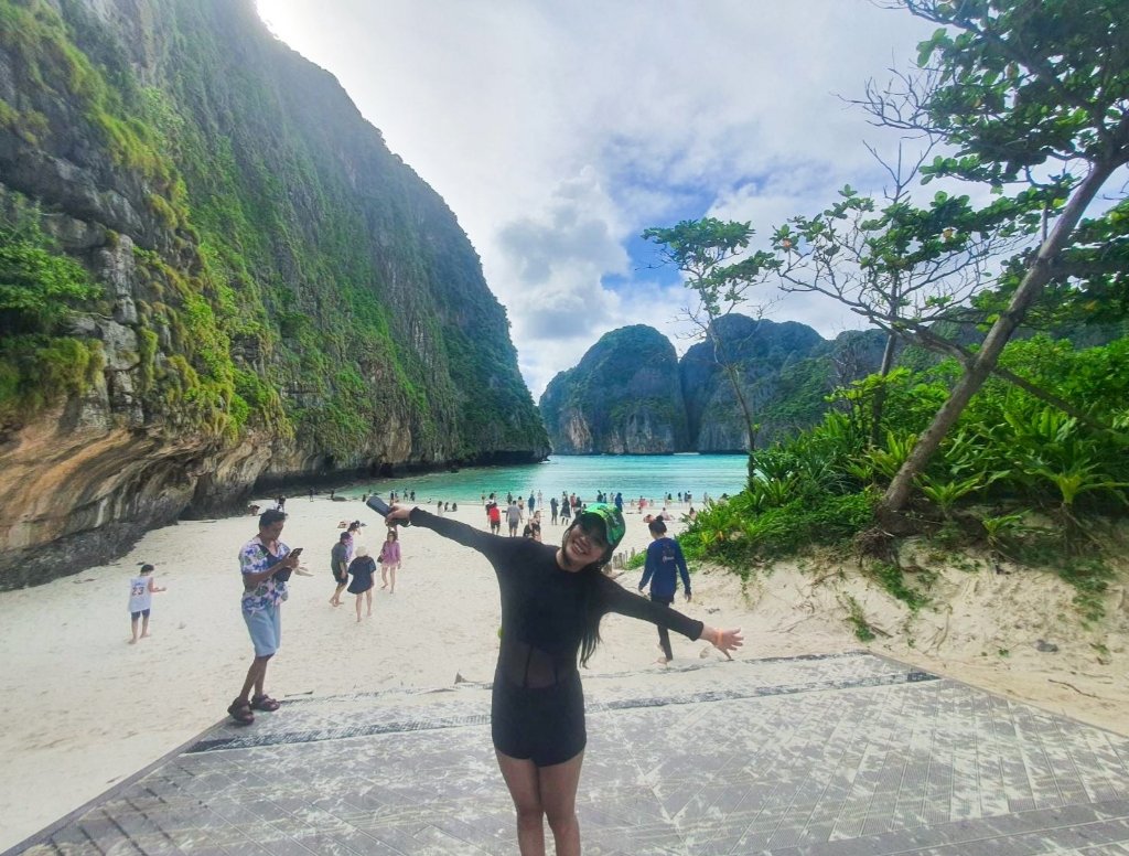 หลังจากนั้นก็ไปยังอ่าวมาหยา ซึ่งทางเรือจะไปจอดบริเวณด้านหลังอ่าวมาหยา และเดินไปยังหน้าอ่าวมาหยาด้วยการเดินเพียง 5 นาทีค่ะ