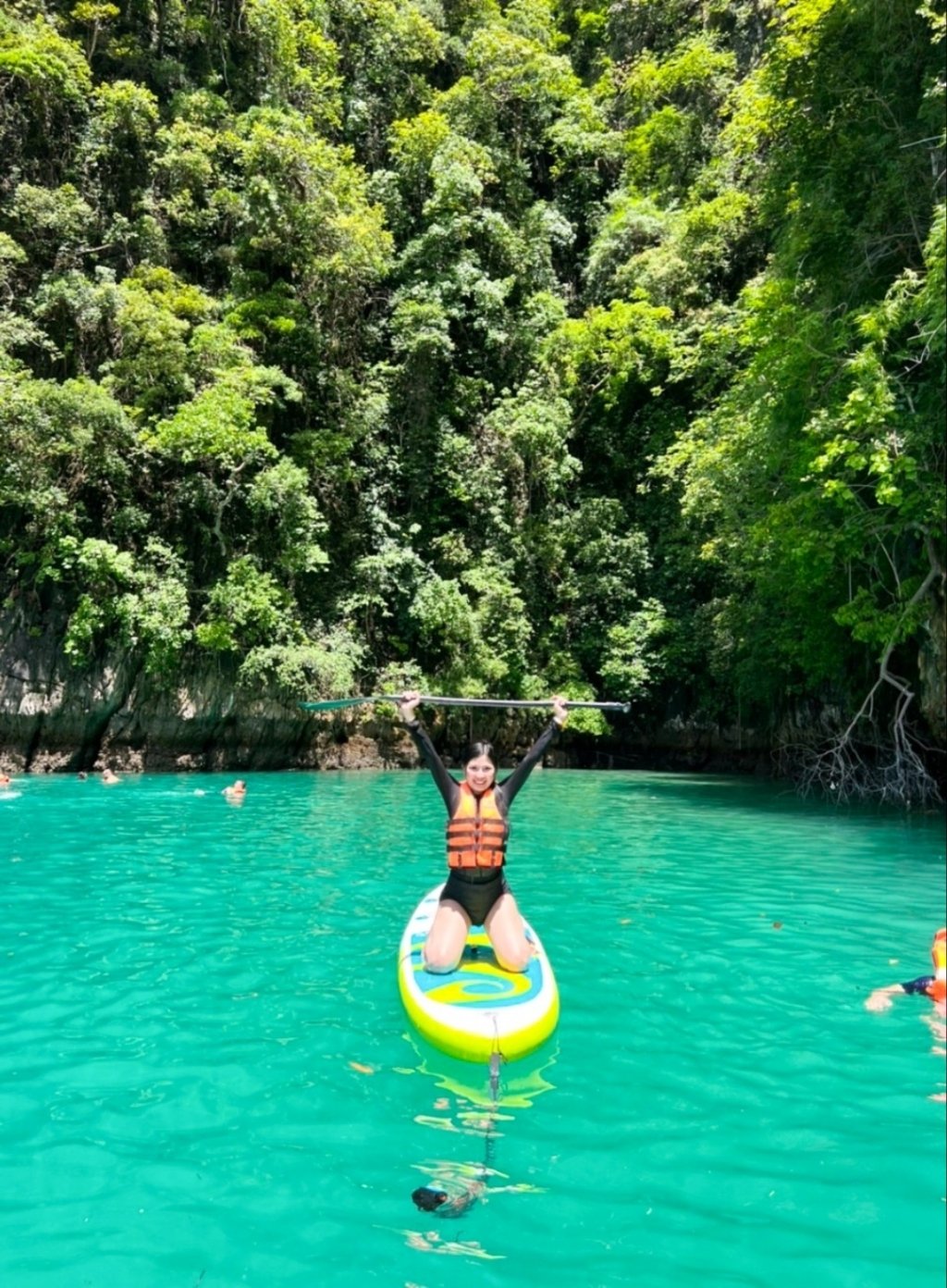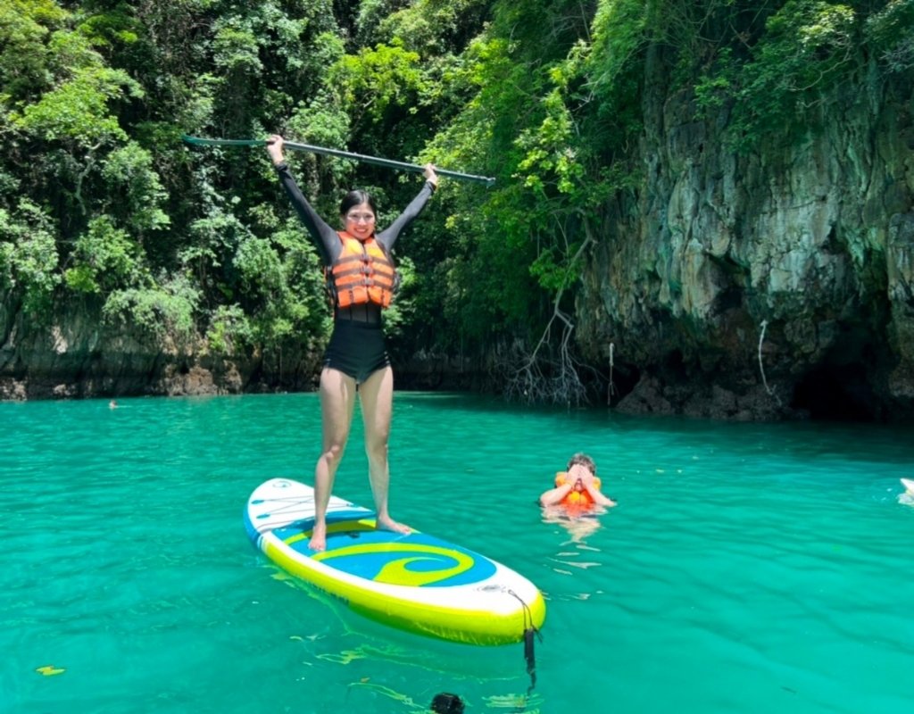 ถ่ายรูปและชมอ่าวเรียบร้อย ก็มาเล่นน้ำกันเลยดีกว่า ทางเรือมีฟรีแพดเดิลบอร์ดให้เล่นด้วยนะ