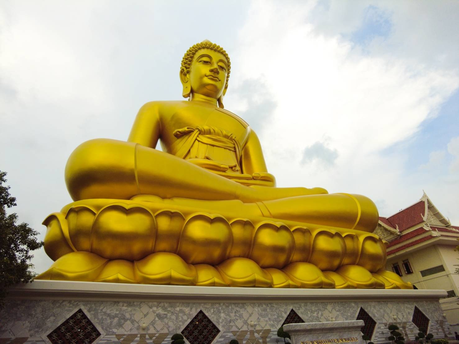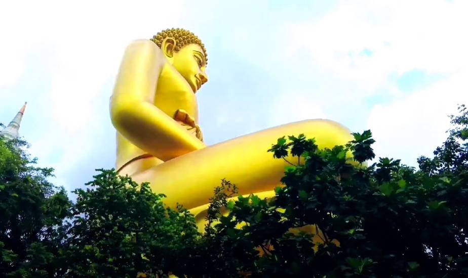 Buddha Dhammakaya Thep Mongkol. It is a large Buddha image in the posture of meditation. Created according to the vision of Luang Por Sod. As tall as a 20-storey building, it has a height of 69 meters and a lap width of 40 meters.