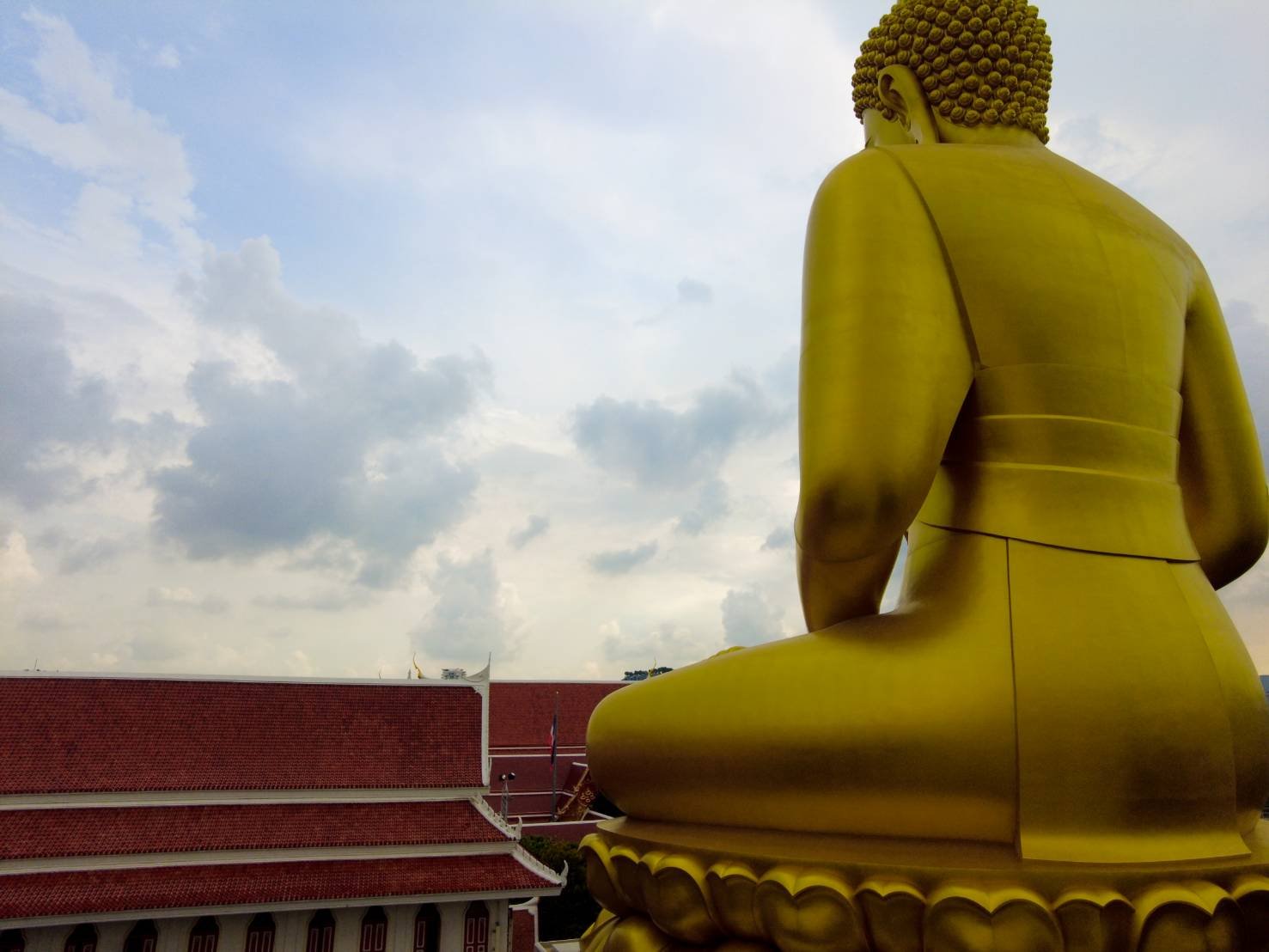 behind the big buddha will be Phra Maha Chedi Maha Ratchamongkhon is more than 80 meters which is higher than the 78-meter-tall Prang of Wat Arun. Inside contains the Buddha's relics, which are divided into 5 floors.