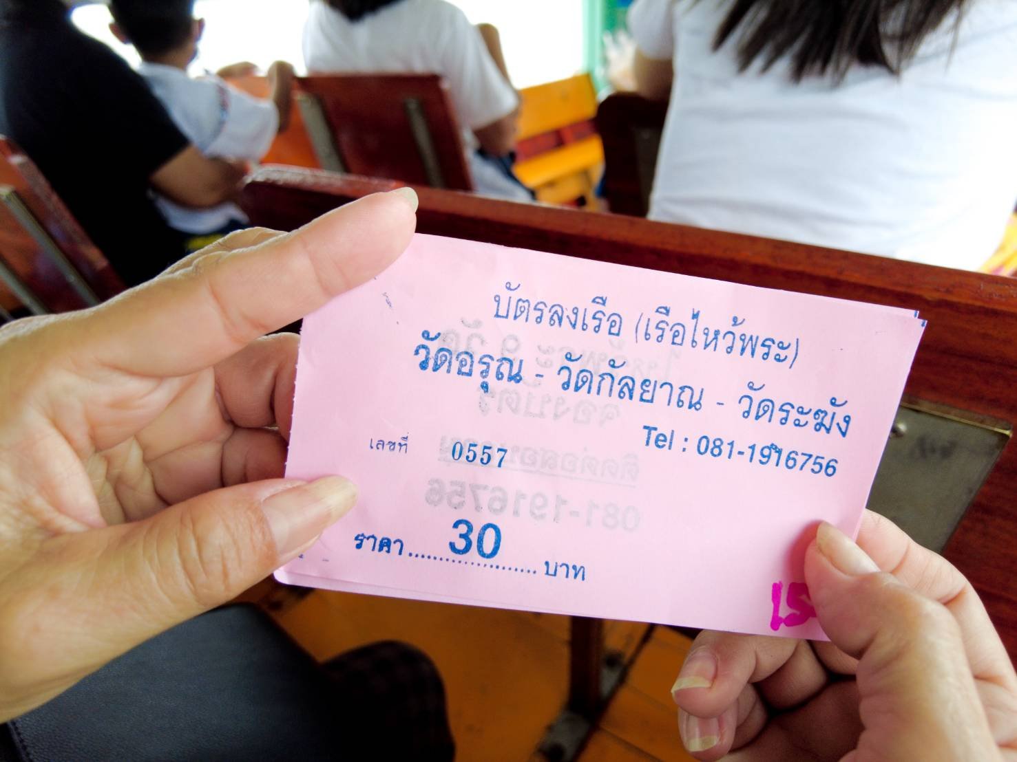 และนี่ฟูดันได้ตั๋วนี่มาค่ะ เป็นตั๋วเหมาราคา 30 บาท ล่องเรือไหว้ได้ทั้ง 3 วัดแบบไปกลับ ถือว่าคุ้มและดีมาก แอบเสียดายไปไหว้วัดระฆังแล้ว แต่ไม่เปงไรค่ะ เพราะฟูต้องกลับไปวัดระฆังเหมือนเดิม เพราะจอดรถไว้ที่นั้น