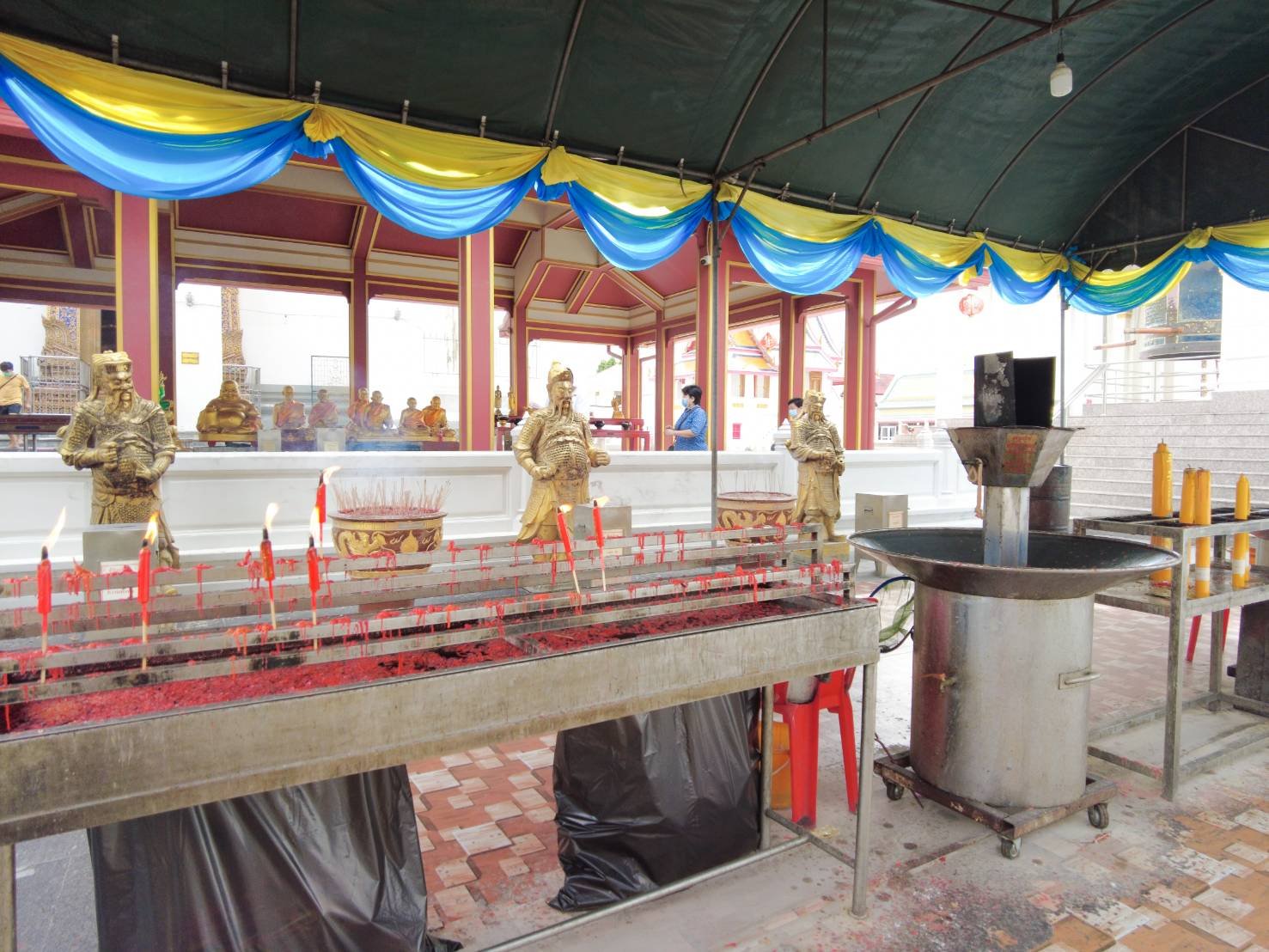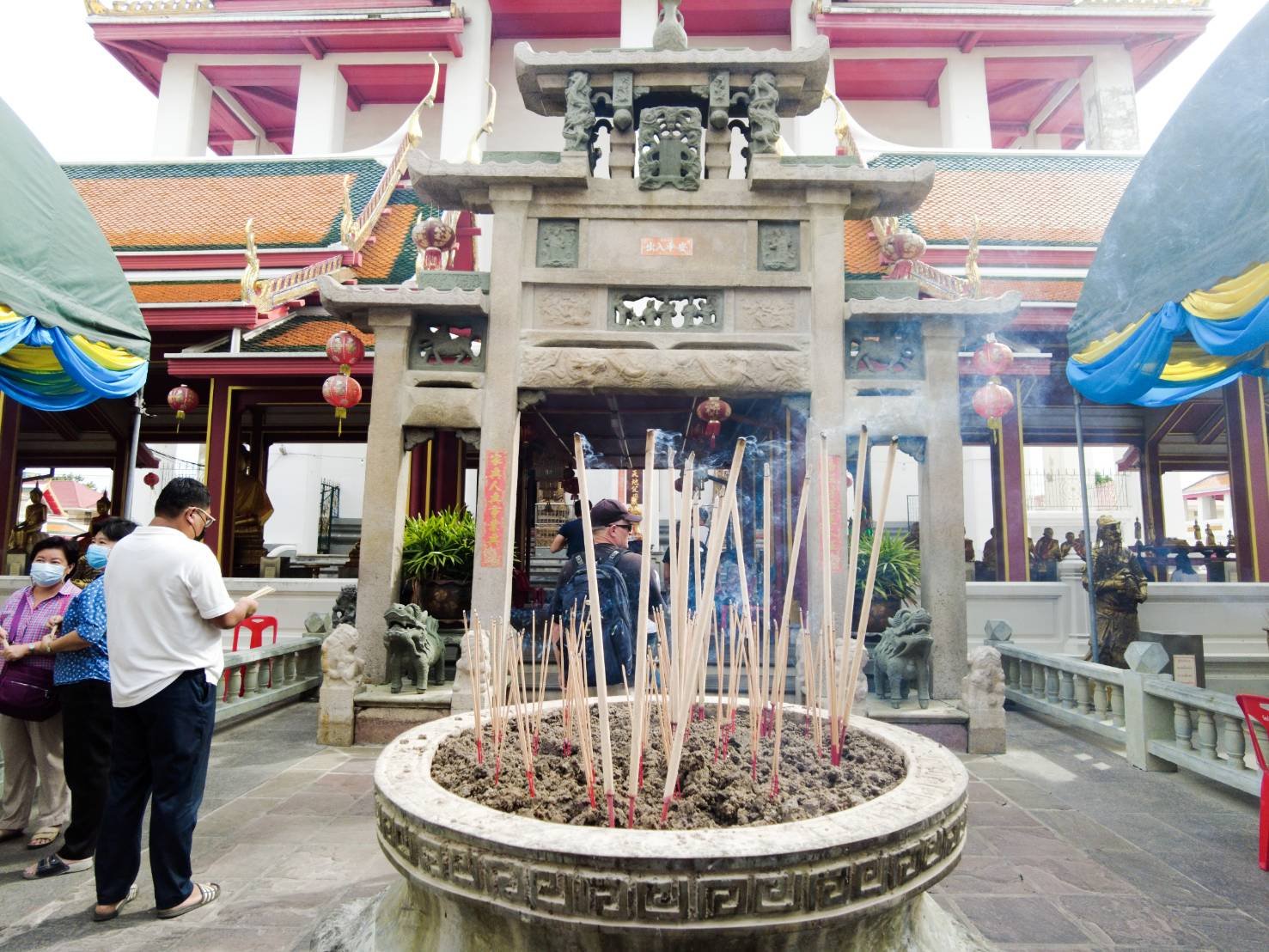 การไหว้ที่นี้จะเป็นการไหว้แบบจีน โดยเราสามารถไหว้เทพข้างนอกก่อนนะคะ พร้อมปักธูปจุดละ 3 ดอก ให้ครบทุกจุด