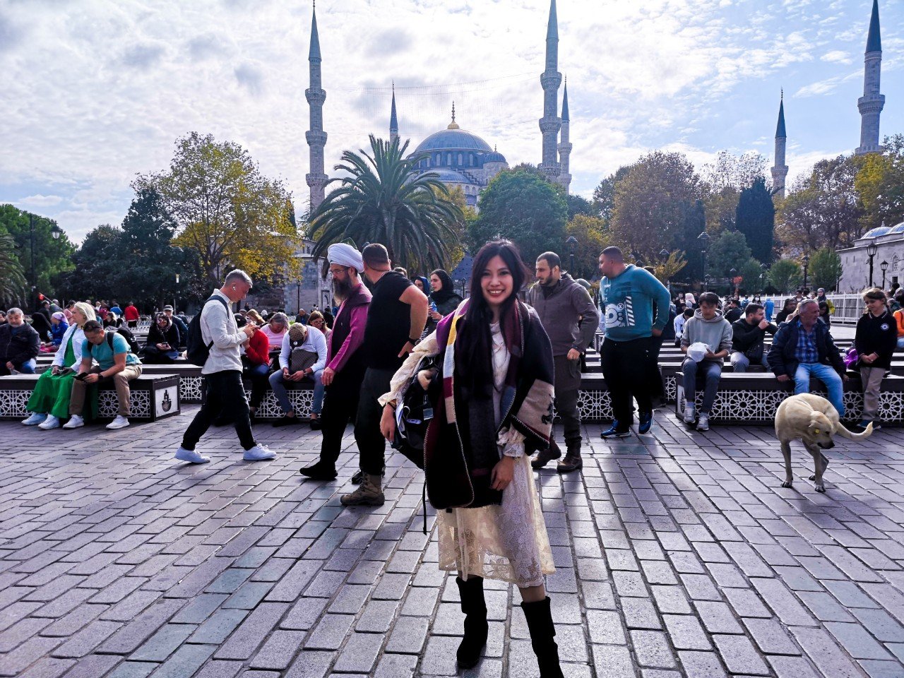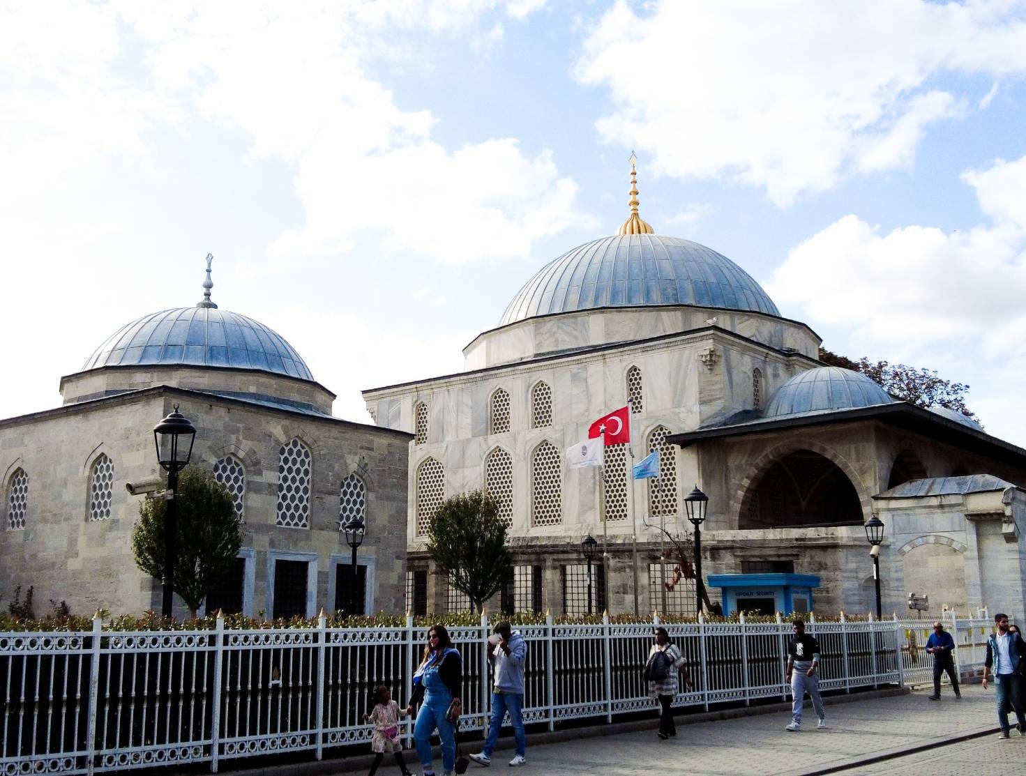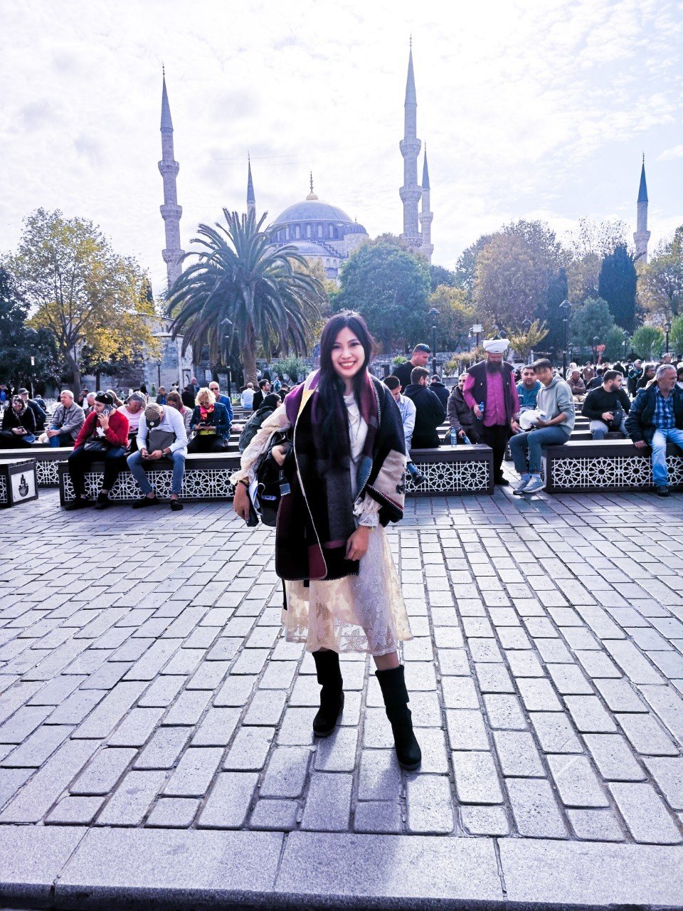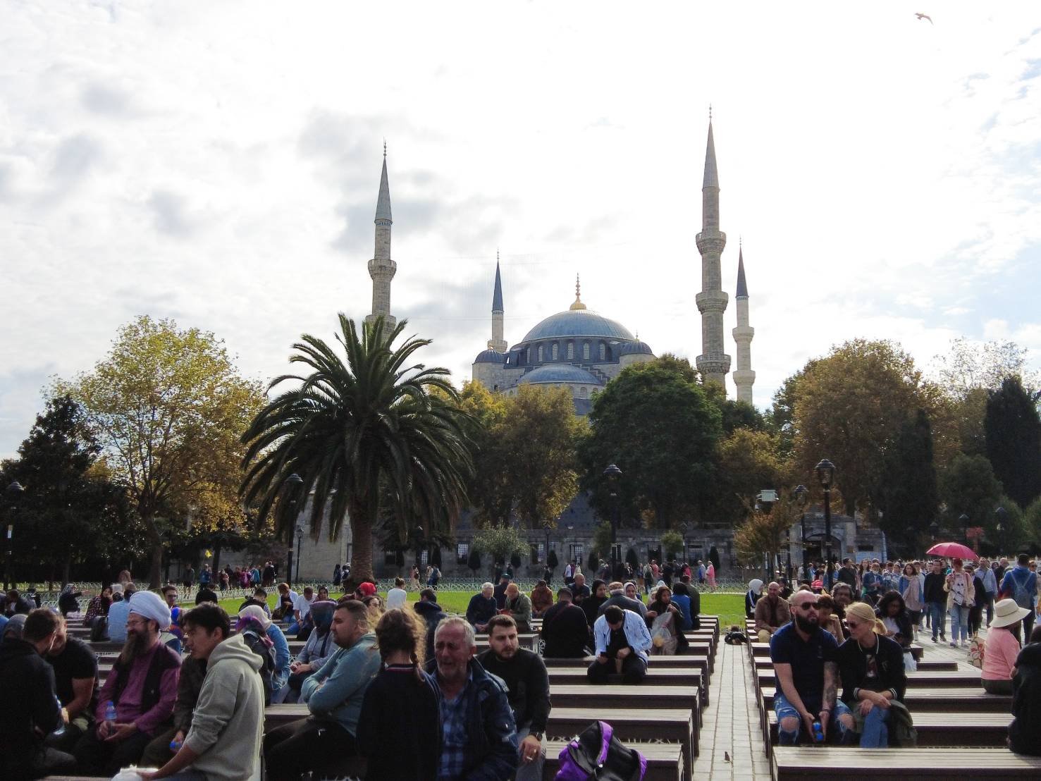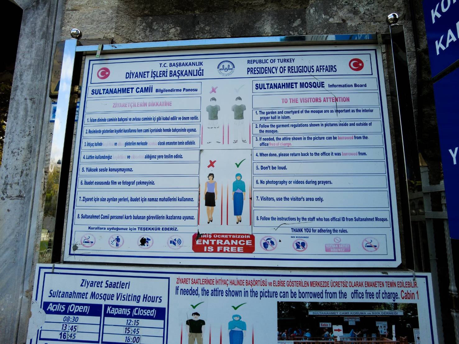 เมื่อถึงที่นี้แล้ว สิ่งที่ขาดไม่ได้คือการเข้าไปชมสถานที่สำคัญทางประวัติศาสตร์ในอดีต นั่นก็คือที่แรก เราเข้าชมมัสยิมสุลต่านอาเหม็ด (Blue Mosque) กันค่ะ การเข้าไปชมเยี่ยมชมที่นี no entrance fee แต่ต้องแต่งกายให้สุภาพด้วยนะคะ รวมถึงใช้ผ้าคลุมหัวด้วยค่ะ เพราะที่นี้เป็นสถานที่ศักดิ์สิทธิ์