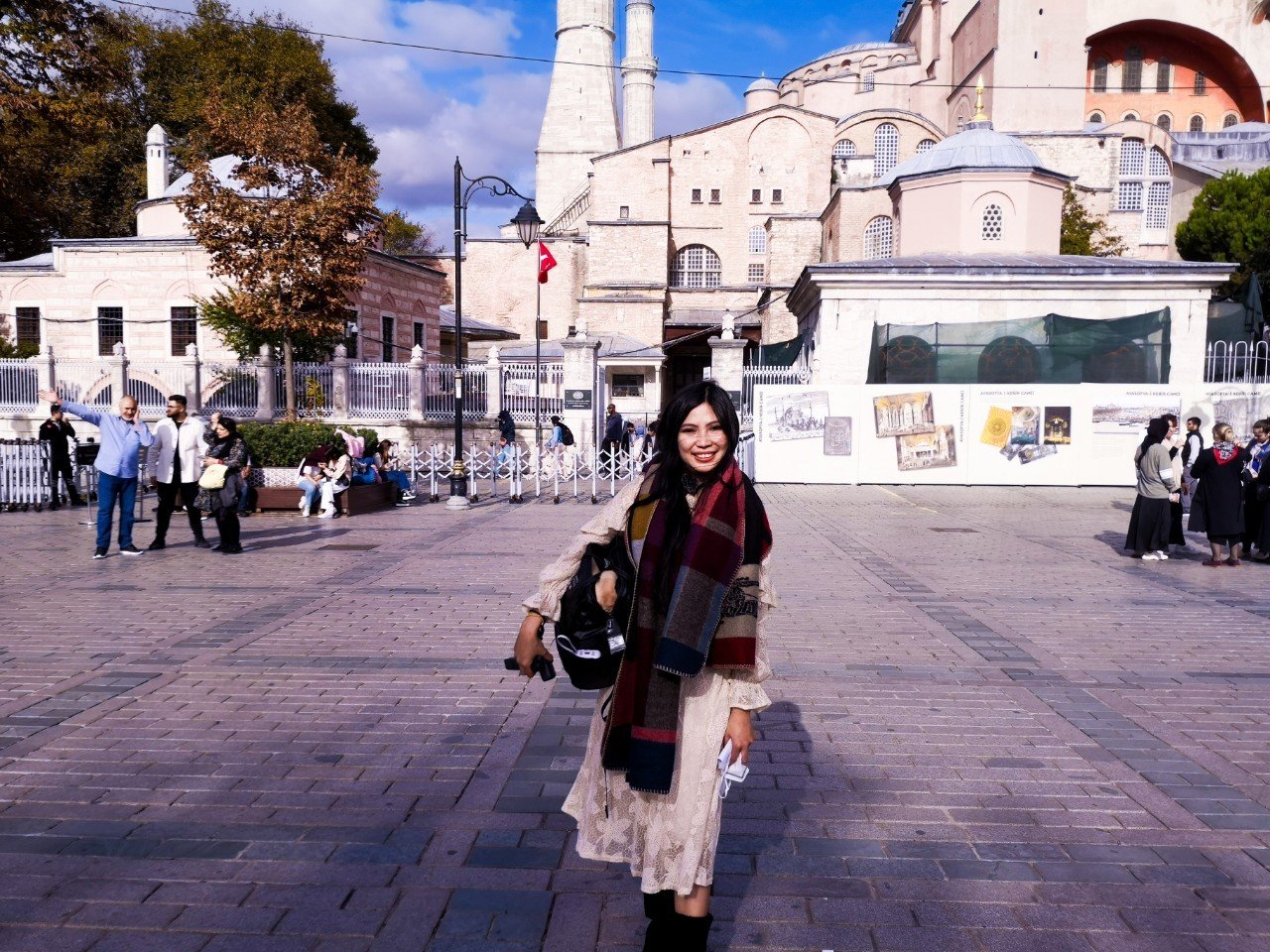 ฟูเดินทางต่อเพื่อไปยังย่าน Sultanahmet Square (จตุรัสสุลต่านอาห์เหม็ด ; สุลต่านนาเหม็ด สแคว) โดยนั่งรถรางจากสถานี Kabatas ไปยังสถานี Sultanahmet ใช้เวลาประมาณ 30 นาที ซึ่งย่านนี้จะเป็นแหล่งรวมสถานที่สำคัญหลายที่เลยค่ะ ไม่ว่าจะเป็น Hagia Sophia, Blue Mosque, Basilica, Basilica Cistern, Topkapi