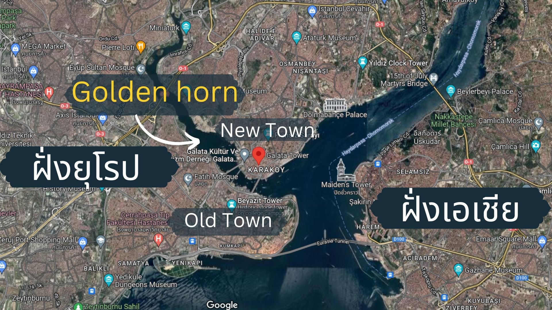 ถ้าเรามองจากวิวข้างบนหอคอย ฝั่งที่ฟูยืนนี้เค้าเรียกว่า New Town ส่วนอีกฝั่งที่มีแม่น้ำคั้นกลางที่เรียกว่า Golden horn จะเป็น Old Town ค่ะ